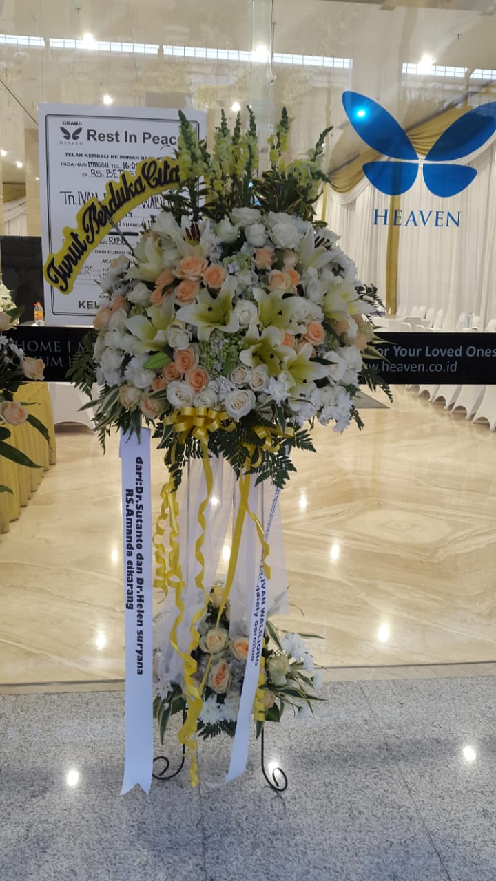 Rangkaian bunga standing flowers yang terdiri dari bahan-bahan bunga segar dan standing sebagai sandaran dengan tampilan dan ucapan- ucapan untuk menyampaikan pesan kepada relasi, sahabat,teman, kolega,  dan rekanan bisnis baik instansi pemerintah maupun swasta