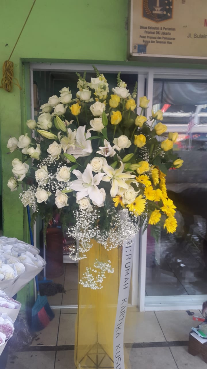 Rangkaian bunga standing flowers yang terdiri dari bahan-bahan bunga segar dan standing sebagai sandaran dengan tampilan dan ucapan- ucapan untuk menyampaikan pesan kepada relasi, sahabat,teman, kolega, dan rekanan bisnis baik instansi pemerintah maupun swasta